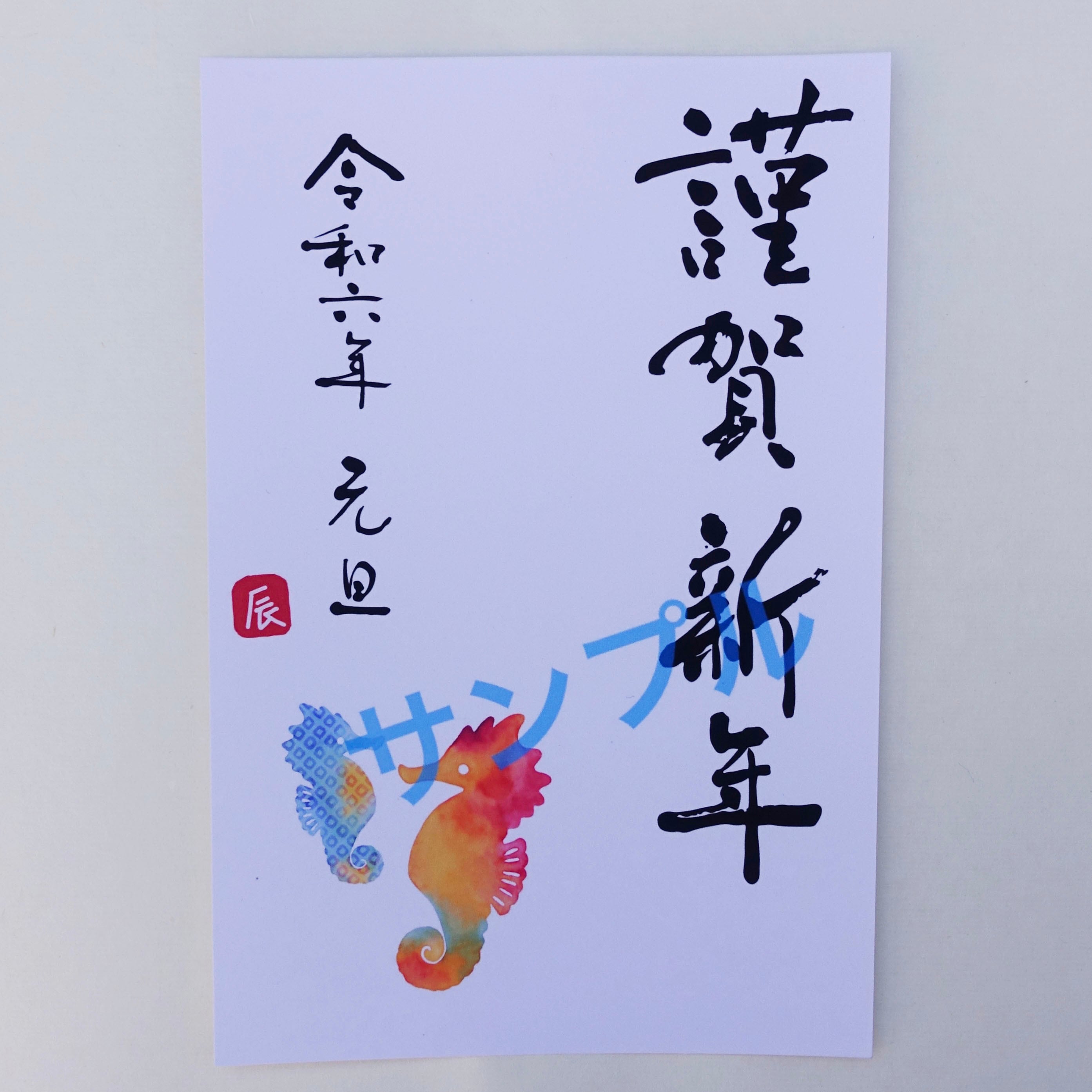 2024年年賀状「タツノオトシゴ(01A・私製年賀はがき)」は、書道家とイラストレーターがコラボした、あたたかいほっこりとした雰囲気の年賀状です。おしゃれで個性的なデザインに仕上げました。