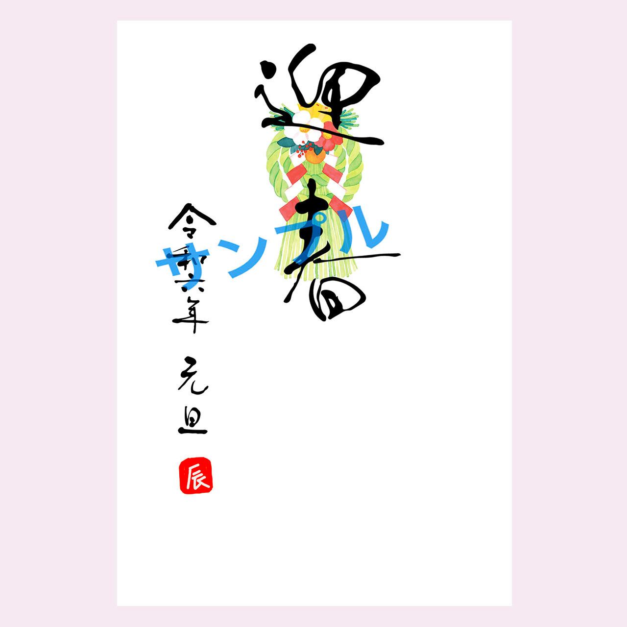 2024年年賀状「正月飾り(03B・お年玉つき年賀はがき)」は、書道家とイラストレーターがコラボした、あたたかいほっこりとした雰囲気の年賀状です。おしゃれで個性的なデザインに仕上げました。